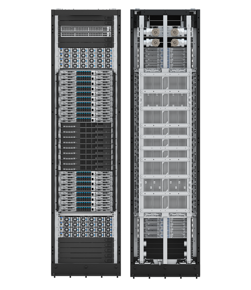 Based on the NVIDIA Blackwell Ultra architecture, Aivres KRS8500 integrates 72 NVIDIA Blackwell Ultra GPUs and 36 NVIDIA Grace™ CPUs, with 288GB HBM3e memory per GPU and 1.8TB/s NVLink interconnects to deliver exascale computing in a single rack. With its advanced direct liquid cooling design, KRS8500 delivers extreme high AI performance and energy efficient compute density for AI data centers.